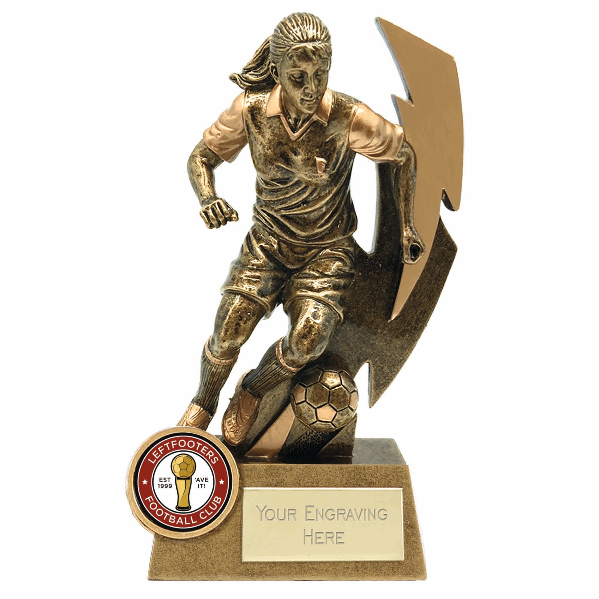 Gold 2D Flash Female Footballer Trophy 14.5cm (5 3/4")